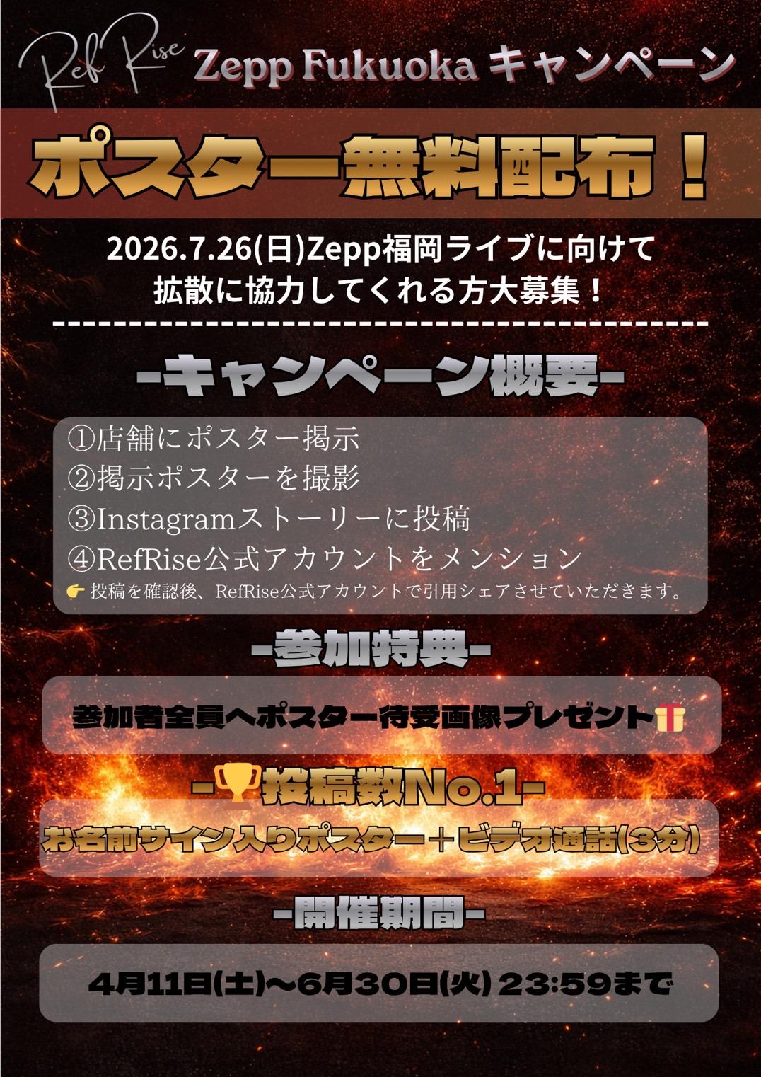 2026年7月26日開催のZepp福岡公演に向けて、ポスター掲示キャンペーンを実施いたします。